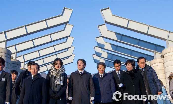 (서울=포커스뉴스) 14일 오전 서울 강북구 국립 4.19 민주묘지를 찾은 한상진 국민의당 창당준비위원장과 안철수 인재영입위원장이 참배 후 발걸음을 옮기고 있다.