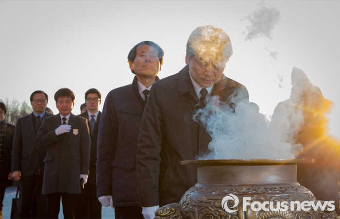 (서울=포커스뉴스) 14일 오전 서울 강북구 국립 4.19 민주묘지를 찾은 안철수 국민의당 인재영입위원장과 한상진 창당준비위원장이 분향 후 참배하고 있다.