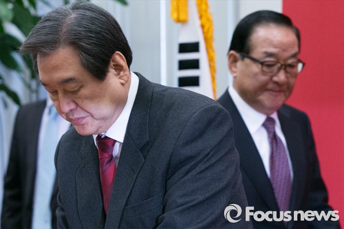 (서울=포커스뉴스) 김무성(왼쪽) 새누리당 대표와 서청원 최고위원이 14일 오전 서울 여의도 국회에서 열린 최고위원회의에 참석하고 있다.
