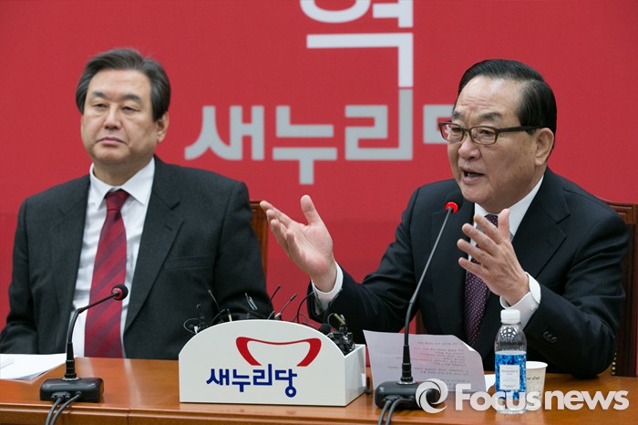 (서울=포커스뉴스) 서청원(오른쪽) 새누리당 최고위원이 14일 오전 서울 여의도 국회에서 열린 최고위원회의에 참석해 발언하고 있다.