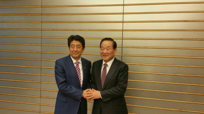 | △ 기념촬영 하는 서청원·아베 신조 |