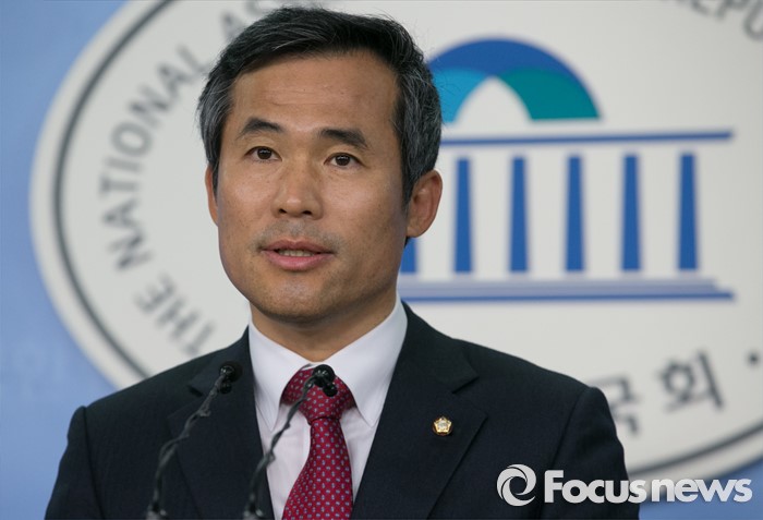 (서울=포커스뉴스) 김승남 더불어민주당 의원이 14일 오전 서울 여의도 국회 정론관에서 탈당 기자회견을 하고 있다.