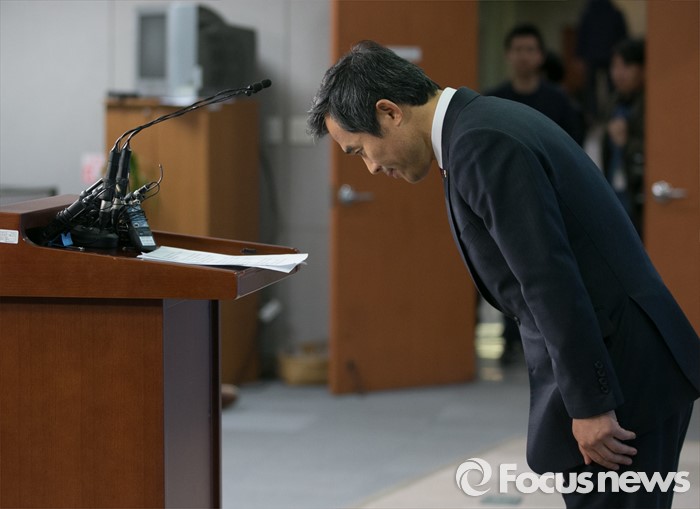 (서울=포커스뉴스) 김승남 더불어민주당 의원이 14일 오전 서울 여의도 국회 정론관에서 탈당 기자회견에 앞서 인사하고 있다.