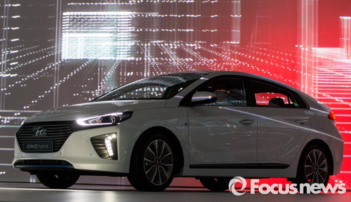 (서울=포커스뉴스) 현대자동차가 14일 오전 서울 중구 동대문디자인플라자에서 하이브리드 자동차 '아이오닉'을 선보이고 있다.
