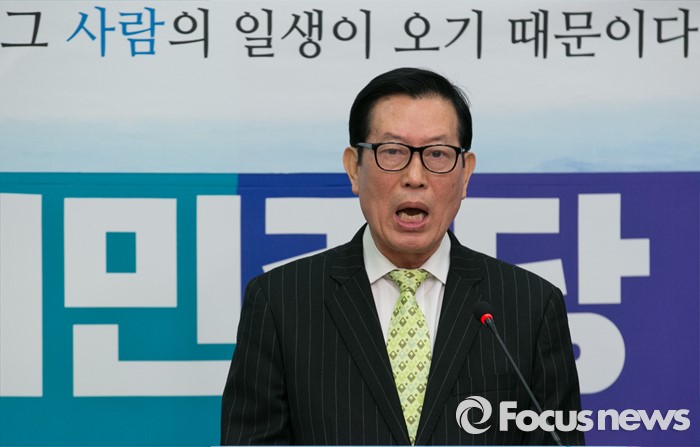 (서울=포커스뉴스) 하정열 한국안보통일연구원장이 14일 오전 서울 여의도 국회에서 더불어민주당 입당 기자회견을 하고 있다.