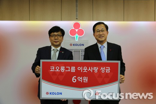 (서울=포커스뉴스) 코오롱그룹은 14일 사회복지공동모금회를 찾아 불우이웃을 위한 희망나눔 성금 6억원을 기탁했다고 밝혔다. 코오롱은 지난해까지 매년 3억원을 기탁해오다 올해 기부금을 2배로 늘렸다.
