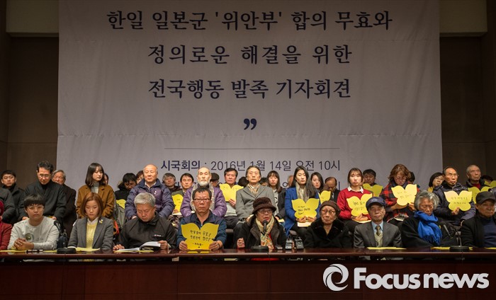 (서울=포커스뉴스) 한국정신대문제대책협의회(정대협)는 14일 한일 일본군 위안부 문제 합의 무효를 이끌어내기 위한 '전국행동' 기구를 발족하고 일본군 위안부 피해자들을 위해 시민들의 힘으로 '정의와 기억 재단'을 설립할 계획이라고 밝혔다.