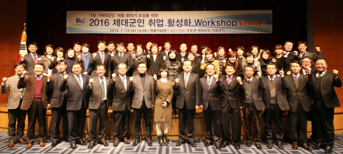최창익 보훈처 제대군인국 취업과장은 “제대군인에 대한 안정적인 사회복귀 지원이 곧 정부 3.0, 명예로운 보훈 3.0의 실천”이라며 “워크숍에서 제기된 다양한 방안이 보다 효율적으로 제대군인 전직지원 사업에 적용되어 양질의 일자리가 지원될 수 있는 분위기를 조성해 나가자”고 말했다.국가보훈처와 제대군인지원센터, (주)스카우트 직원들이 13일 제대군인 사회복귀 지원을 위한 워크숍을 마친 뒤 기념촬영을 하고 있다. <사진제공=(주)스카우트>
