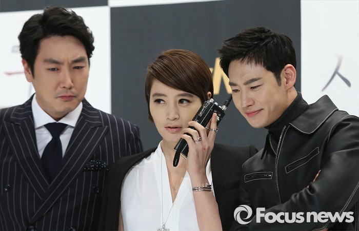 (서울=포커스뉴스) 14일 오후 서울 영등포구 타임스퀘어 아모리스홀에서 열린 tvN 10주년 특별기획 '시그널' 제작발표회에 참석한 배우 조진웅(왼쪽부터), 김혜수, 이제훈이 포토타임을 갖고 있다.