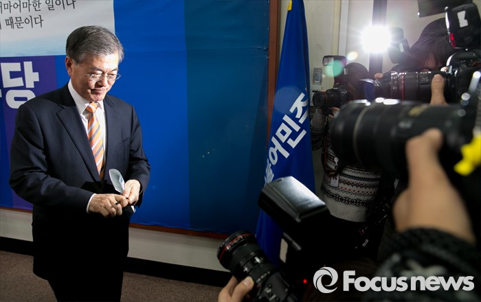 (서울=포커스뉴스) 문재인 더불어민주당 대표가 14일 오후 서울 여의도 국회에서 지난 2012년 대선 당시 박근혜 대통령의 경제민주화 공약을 만든 김종인 전 의원을 조기선대위원장으로 영입한 것과 관련 기자간담회를 마친 뒤 퇴장하고 있다.