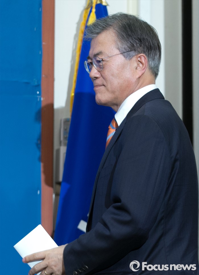 (서울=포커스뉴스) 문재인 더불어민주당 대표가 14일 오후 서울 여의도 국회에서 지난 2012년 대선 당시 박근혜 대통령의 경제민주화 공약을 만든 김종인 전 의원을 조기선대위원장으로 영입한 것과 관련 기자간담회를 위해 입장하고 있다.