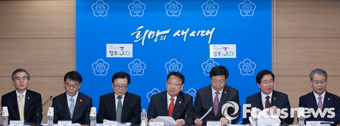 왼쪽부터 정재찬 공정거래위원장, 강호인 국토교통부장관, 이동필 농림축산식품부장관, 유일호 부총리, 주형환 산업통상자원부장관, 김영석 해양수산부장관, 임종룡 금융위원장.