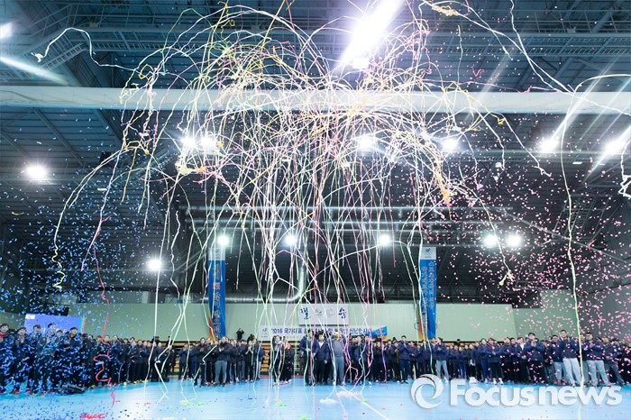 (서울=포커스뉴스) 14일 오후 서울 노원구 태릉선수촌 오륜관에서 열린 2016년 국가대표 훈련개시식 및 체육인 신년인사회에서 선수들의 승리를 기원하는 축포가 터지고 있다.