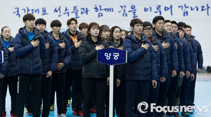 (서울=포커스뉴스) 14일 오후 서울 노원구 태릉선수촌 오륜관에서 열린 2016년 국가대표 훈련개시식 및 체육인 신년인사회에서