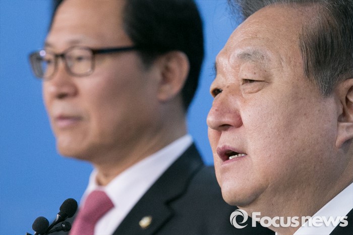 (서울=포커스뉴스) 정대철 더불어민주당 상임고문이 15일 오전 서울 여의도 국회 정론관에서 탈당 표명 기자회견을 하고 있다.