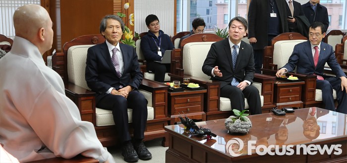 [부자동네타임즈 조영재 기자] 15일 오전 국민의당 창당을 준비중인 안철수의원이 조계사를 방문해 자승 총무원장을 만나 환담을 나누고 있다.