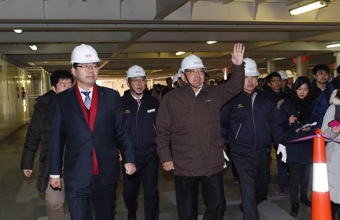 (평택=포커스뉴스) 유일호 부총리 겸 기획재정부장관이 15일 경기도 평택항을 방문, 기아자동차 수출 부두 현장을 시찰하고 있다. <사진제공=기획재정부>