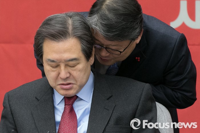 김 대표는 "오직 국민에게 당의 정강 정책을 갖고 국민에게 호소할 것"이라며 "인물로 쇼를 벌이고 싶은 생각은 없다"고 했다.김무성(왼쪽) 새누리당 대표와 조원진 원내수석부대표가 15일 오전 서울 여의도 국회에서 열린 주요당직자회의에 참석해 귀엣말을 하고 있다. 2016.01.15 박철중 기자