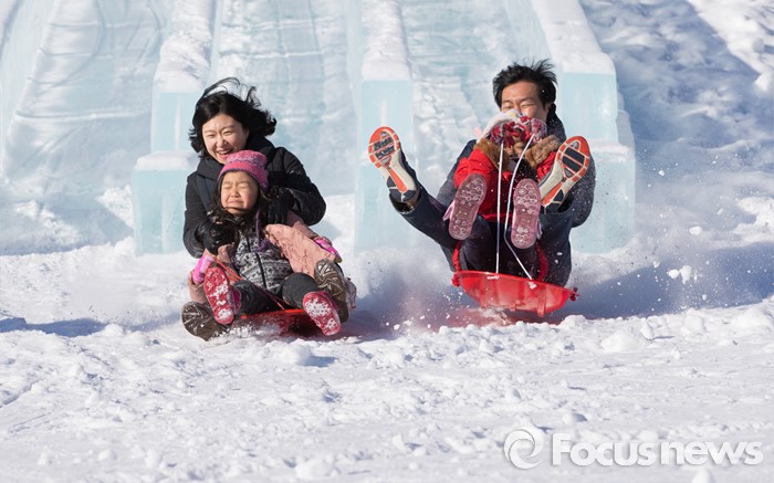 (평창=포커스뉴스) 15일 오후 강원도 평창군 횡계리 일대에서 열린 대관령 눈꽃축제를 찾은 관람객들이 눈썰매를 타며 즐거운 시간을 보내고 있다. 이번 행사는 오는 15일 시작해 내달 10일 강원 평창군 횡계리 일대에서 열린다.