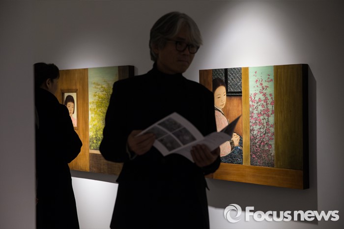 (서울=포커스뉴스) 15일 오후 서울 용산구 갤러리 조은에서 김덕용, 전병현 작가 초대전이 열리고 있는 가운데 관람객이 김덕용 작가의 작품을 감상하고 있다.