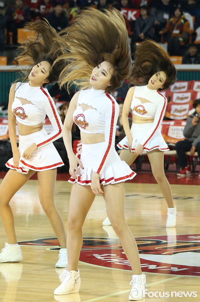 (서울=포커스뉴스) 15일 서울 잠실학생체육관에서 열린 2015-2016 프로농구 SK-KGC 경기에서 SK 치어리더가 경기 시작전 코트의 분위기를 끌어 올리는 발랄한 춤을 선보이고 있다.
