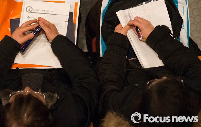 (서울=포커스뉴스) 16일 오후 서울 강남구 숙명여고 대강당에서 열린 '대성학원 재수성공전략 설명회'에서 학생과 학부모들이 성공전략을 경청하고 있다.