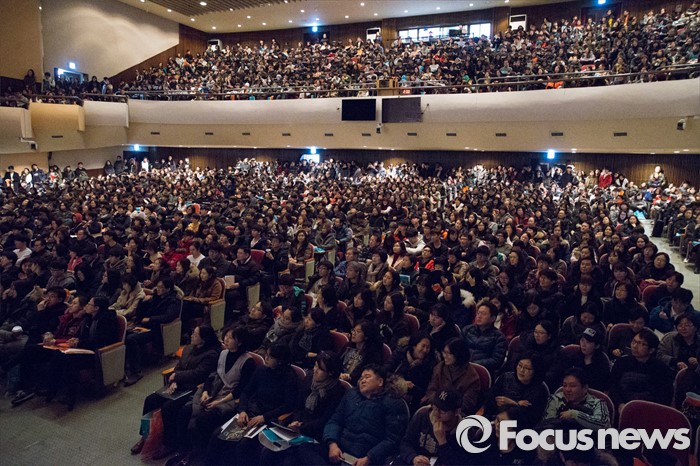 (서울=포커스뉴스) 16일 오후 서울 강남구 숙명여고 대강당에서 열린 '대성학원 재수성공전략 설명회'에서 학생과 학부모들이 성공전략을 경청하고 있다.
