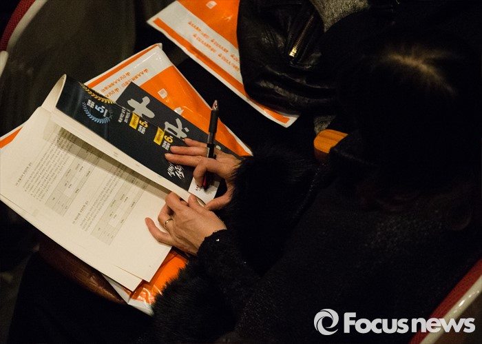 (서울=포커스뉴스) 16일 오후 서울 강남구 숙명여고 대강당에서 열린 '대성학원 재수성공전략 설명회'에서 한 학부모가 자료를 보고 있다.