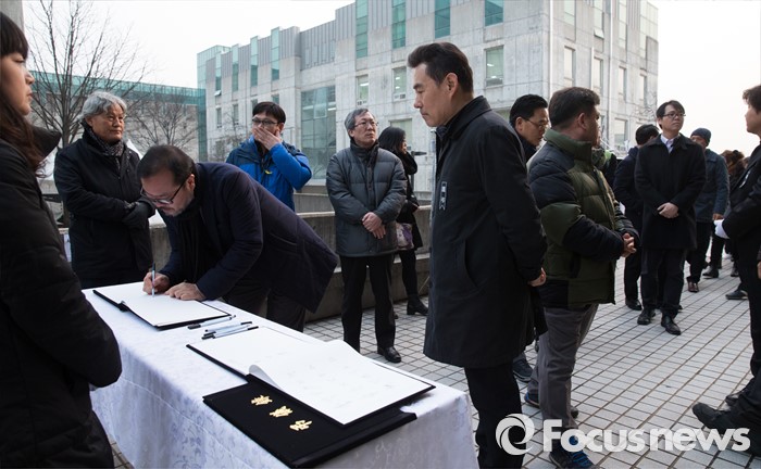 (서울=포커스뉴스) 16일 오후 故 신영복 성공회대 석좌교수의 빈소가 마련된 서울 구로구 성공회대학교 성미가엘성당에 조문객들의 발걸음이 이어지고 있다.