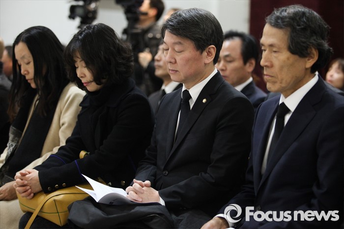 (서울=포커스뉴스) 한상진 국민의당 창당준비위원장과 안철수 인재영입위원장이 16일 오후 서울 구로구 성공회대학교 성미가엘성당에 마련된 故 신영복 성공회대 석좌교수의 빈소를 찾아 추도예배를 드리고 있다. <사진제공=성공회대학교>