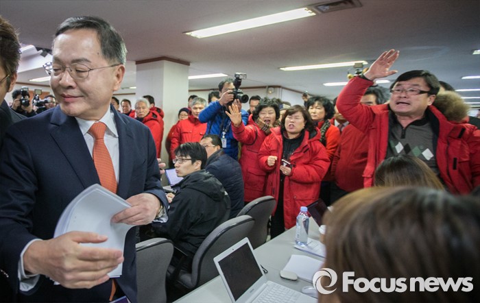 강 위원장은 안 전 대법관의 기자회견 직후 바로 기자회견을 열고 "당원이나 주민들에게 험지니 영입 인사니 이런 부분에 대해 한 번이라도 물어봤냐"며 "새누리당은 개누리당이냐"고 울분을 토했다.