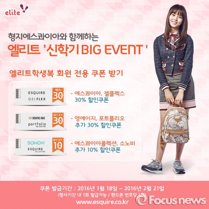 (서울=포커스뉴스) 형지엘리트의 교복 브랜드 엘리트는 오는 2월21일까지 형지에스콰이아와 함께 ‘신학기 BIG EVENT’를 진행한다.