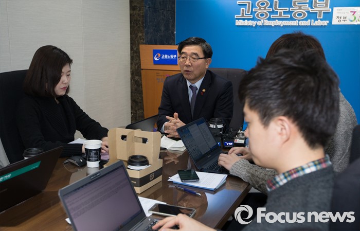 (세종=포커스뉴스) 이기권 고용노동부장관이 18일 오전 세종시 정부세종청사 고용부 기자실을 방문, 출입기자들과 간담회를 갖고 노동현안에 대해 질문에 답변하고 있다.