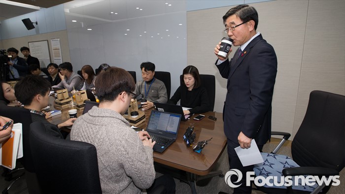 (세종=포커스뉴스) 이기권 고용노동부장관이 18일 오전 세종시 정부세종청사 고용부 기자실을 방문, 출입기자들과 간담회를 마치고 자리에서 일어나고 있다.