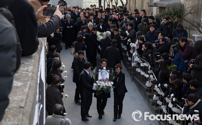 (서울=포커스뉴스) 18일 오후 서울 구로구 성공회대학교에서 엄수된 '故 신영복 석좌교수 영결식'에서 고인의 영정과 유해가 운구되고 있다.