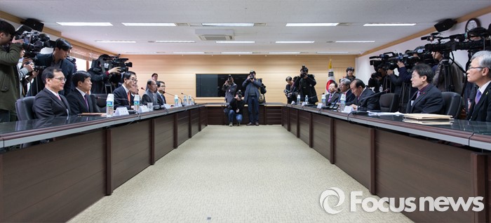 (서울=포커스뉴스) 18일 오후 서울 종로구 정부서울청사에서 이준식(왼쪽 세번째) 부총리 겸 교육부 장관이 전국 시도교육감협의회 회장단 간담회에 참석해 모두발언을 하고 있다.