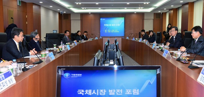 (서울=포커스뉴스) 송언석 기획재정부 차관이 18일 서울시 영등포구 여의도 한국거래소에서 열린 국채시장 발전 포럼에 참석해 모두 발언을 하고 있다. <사진제공=기획재정부>