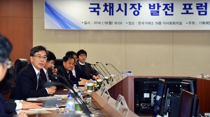 (서울=포커스뉴스) 송언석 기획재정부 차관이 18일 서울시 영등포구 여의도 한국거래소에서 열린 국채시장 발전 포럼에 참석해 모두 발언을 하고 있다. <사진제공=기획재정부>