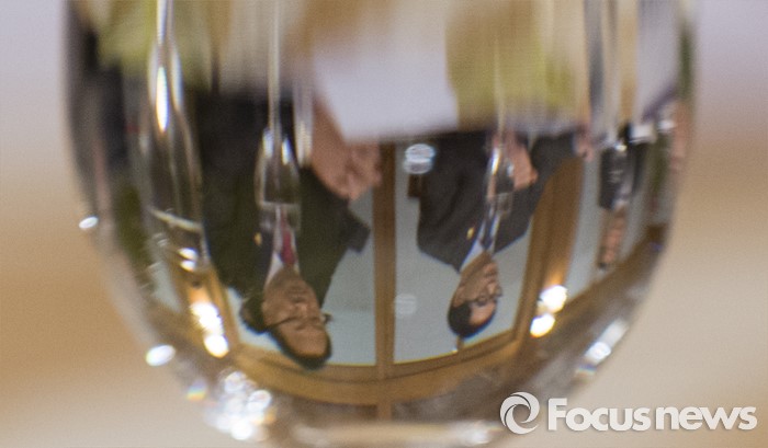 (서울=포커스뉴스) 19일 오전 서울 종로구 삼청동 국무총리공관에서 열린당·정·청 정책조정협의회에 참석한 유일호(왼쪽) 경제부총리 겸 기획재정부 장관과 이준식 사회부총리 겸 교육부 장관의 모습이 물컵에 반영되고 있다.