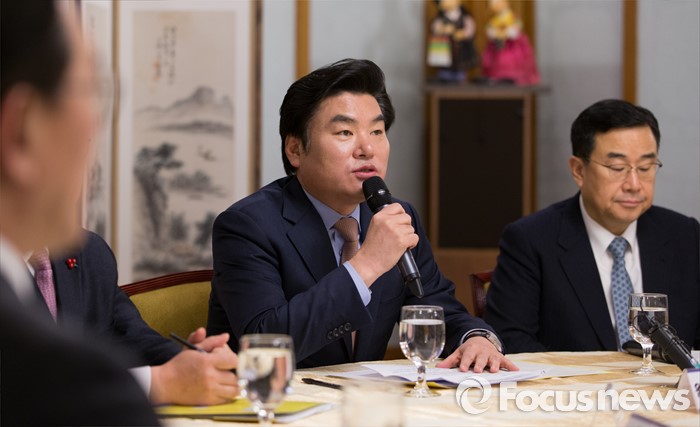 (서울=포커스뉴스) 19일 오전 서울 종로구 삼청동 국무총리공관에서 열린당·정·청 정책조정협의회에 참석한 원유철 새누리당 원내대표가 모두발언을 하고 있다.