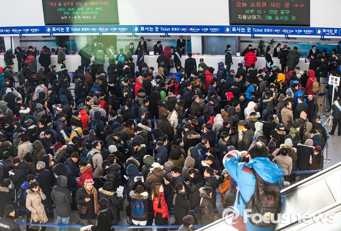 (서울=포커스뉴스) 설 승차권 현장예매가 시작된 19일 오전 서울 중구 서울역 매표소에서 시민들이 승차권을 구입하고 있다. 코레일은 19일과 20일, 이틀 동안 설 연휴 열차 승차권 예매를 시작한다고 밝혔다.