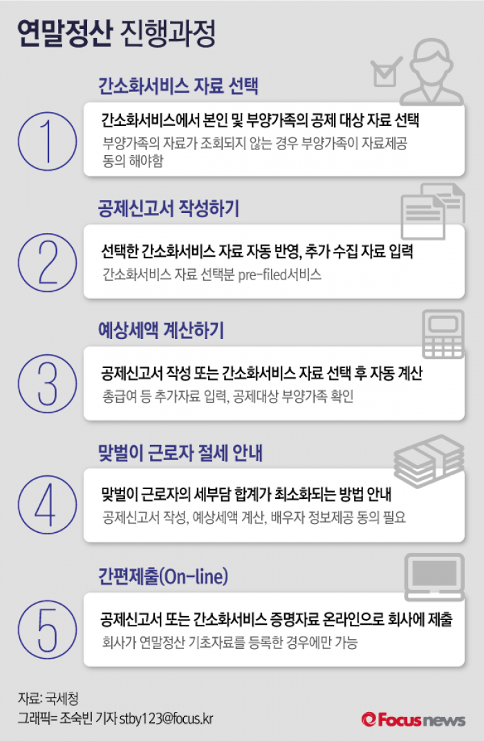 (서울=포커스뉴스) 국세청은 19일 오전 8시부터 연말정산 예상세액 계산과 공제신고서를 제출할 수 있는 '편리한 연말정산 서비스'를 열었다.