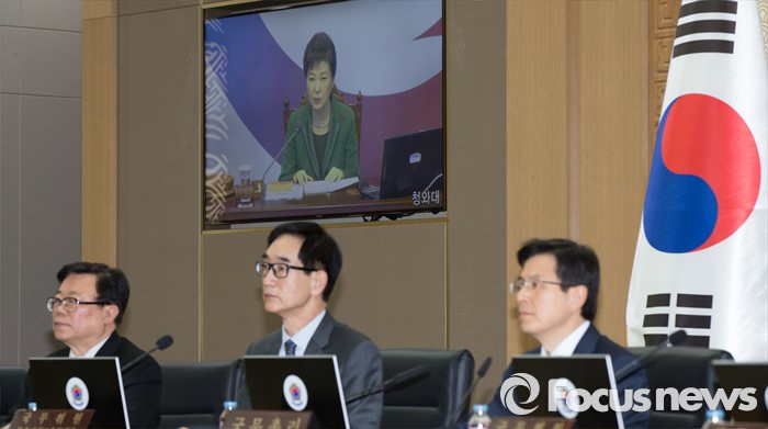 (세종=포커스뉴스) 황교안 국무총리가 19일 오전 세종시 정부세종청사 국무회의장에서 열린 청와대-세종청사 영상 국무회의에 참석해 박근혜 대통령의 모두발언을 경청하고 있다.