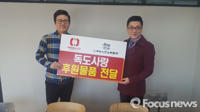 (서울=포커스뉴스) 독도사랑후원기업인 스포츠 의류 브랜드 패기앤코는 지난 18일 오전 서울 논현로에 위치한 강남 GS타워에서 독도사랑운동본부에 후원물품을 전달했다.