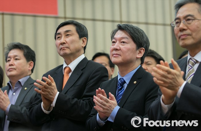 (서울=포커스뉴스) 국민의당(가칭) 안철수 의원과 더불어민주당 이종걸 원내대표가 19일 오후 서울 중구 은행회관 국제회의실에서 열리는 금융노조 제51차 정기전국대의원대회에 참석해 박수를 치고 있다.