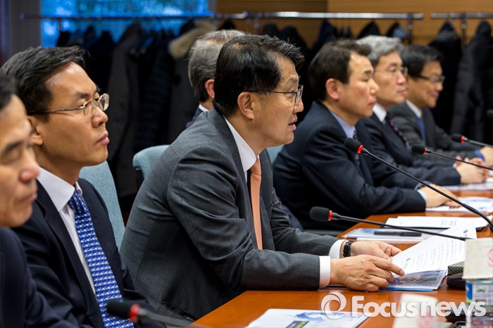 (서울=포커스뉴스) 진웅섭 금융감독원장이 19일 오후 서울 종로구 금융감독원 연수원에서 열린 '금융위원회-금융감독원 간부 합동연찬회'에 자리해 모두발언 하고 있다.