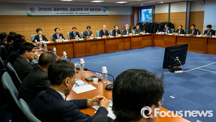 (서울=포커스뉴스) 진웅섭 금융감독원장이 19일 오후 서울 종로구 금융감독원 연수원에서 열린 '금융위원회-금융감독원 간부 합동연찬회'에 자리해 모두발언 하고 있다.