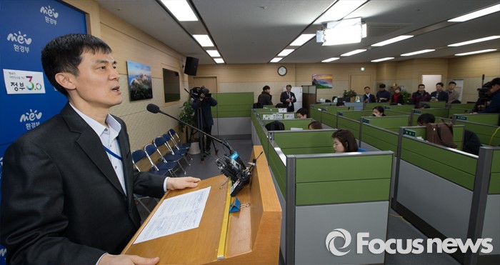 (세종=포커스뉴스) 홍동곤 환경부 교통환경과장이 19일 세종시 정부세종청사 환경부 기자실에서 브리핑을 갖고 아우디폭스바겐코리아 사장 형사고발 관련 입장을 밝히고 있다.