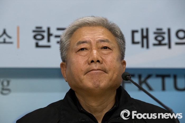 | △ 노사정합의 파기 선언, 복잡한 표정짓는 김동만 한국노총 위원장 |