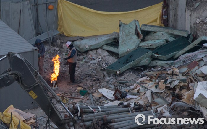 (서울=포커스뉴스) 전국이 영하의 강추위를 보이는 20일 오전 서울 서초구의 한 공사장에서 인부들이 모닥불 주변에서 추위를 녹이고 있다.